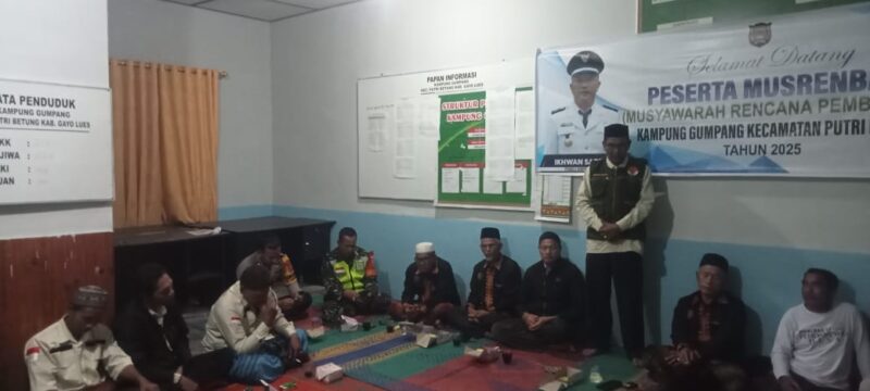 Putri Betung – Babinsa Koramil 09/Putri Betung Sertu Sabtono Menghadiri Undangan Rapat Musyawarah Rencana Pembangunan Desa Tentang Perencanaan Desa Dalam Rangka Penyusunan RKP Desa Tahun 2025 dan DURKP Desa Tahun 2026″. Bertempat di Kantor Pengulu Desa Gumpang Pekan Kec. Putri Betung Kab. Gayo Lues Sabtu (07/12/2024).
