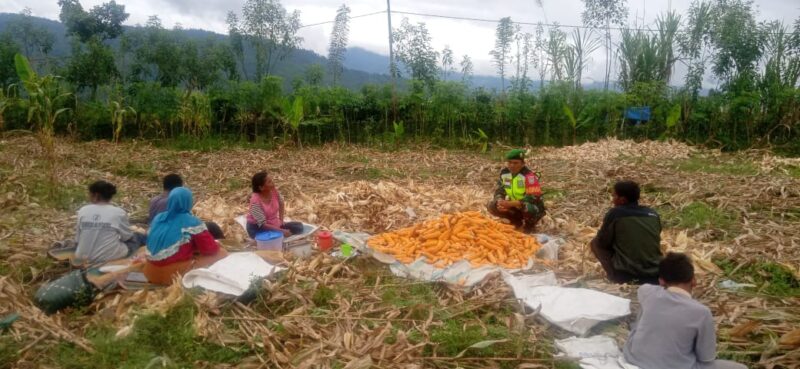GAYO LUES | Babinsa koramil 10/Pantan cuaca serda Hajimin memberikan motivasi dan dukungan kepada para petani jagung yg lagi memanen Tanaman buah jagung, yang sedang di kembangkannya di desa seneren kecamatan pantan cuaca. Minggu (15/12/2024).
