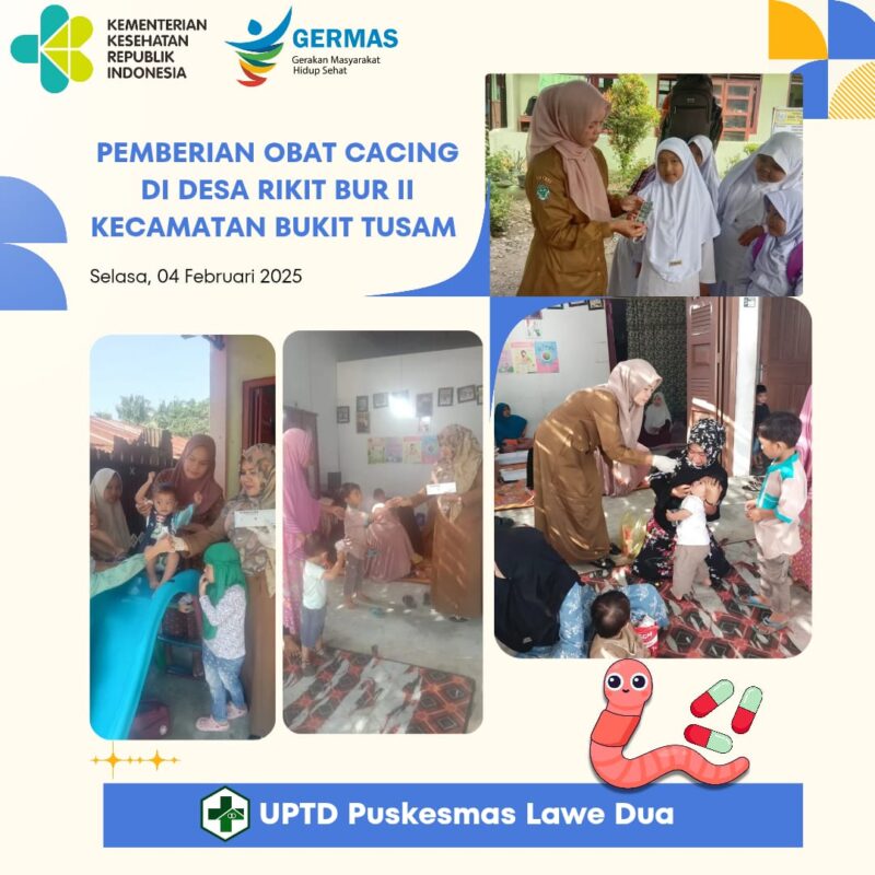 Kutacane, 04 Februari 2025, Pemberian Obat Cacing dan Vit A yang Rutin Dilakukan Setiap di bulan Februari & Agustus di Desa Rikit Bur ll UPTD Puskesmas Lawe Dua.