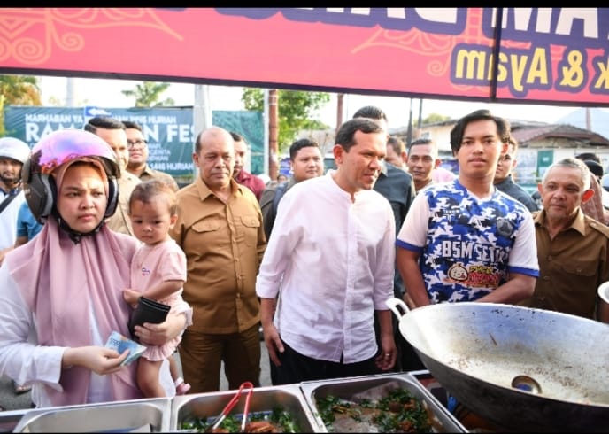 Banda Aceh – Wakil Gubernur Aceh Fadhlullah didampingi sejumlah Kepala Satuan Kerja Perangkat Aceh, kunjungi Pasar Ramadhan Cemerlang, yang berada di kawasan jalan Garuda, Selasa (4/3/2025) sore.