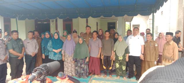 Kutacane_Bupati Aceh Tenggara H. M. Salim Fakhry didampingi Ketua DPRK Aceh Tenggara, Kepala Dinas Sosial dan Kepala BPBD Aceh Tenggara. menyerahkan bantuan masa panik korban kebakaran di Desa Tualang Baru Kecamatan Bukit Tusam. Senin (21/4/2025)