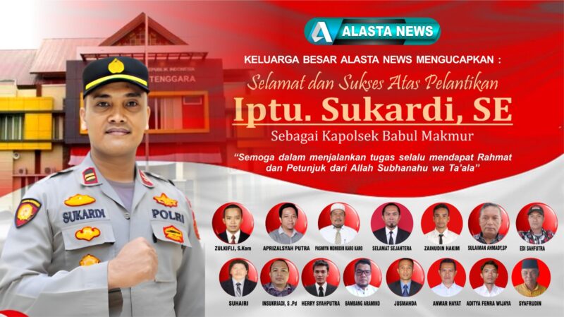 Keluarga Besar Alasta News Mengucapkan Selamat dan Sukses Atas Pelantikan Iptu Sukardi,SE Sebagai Kapolsek Babul Makmur