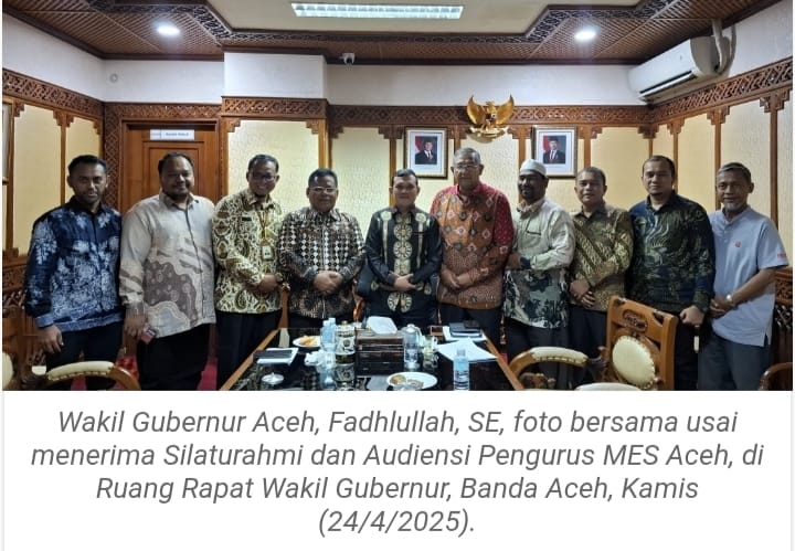 BANDA ACEH— Wakil Gubernur Aceh, Fadhlullah, menerima silaturahmi pengurus Masyarakat Ekonomi Syariah (MES) Aceh, di ruang kerjanya di Kantor Gubernur Aceh, Kamis, (24/4/2025).