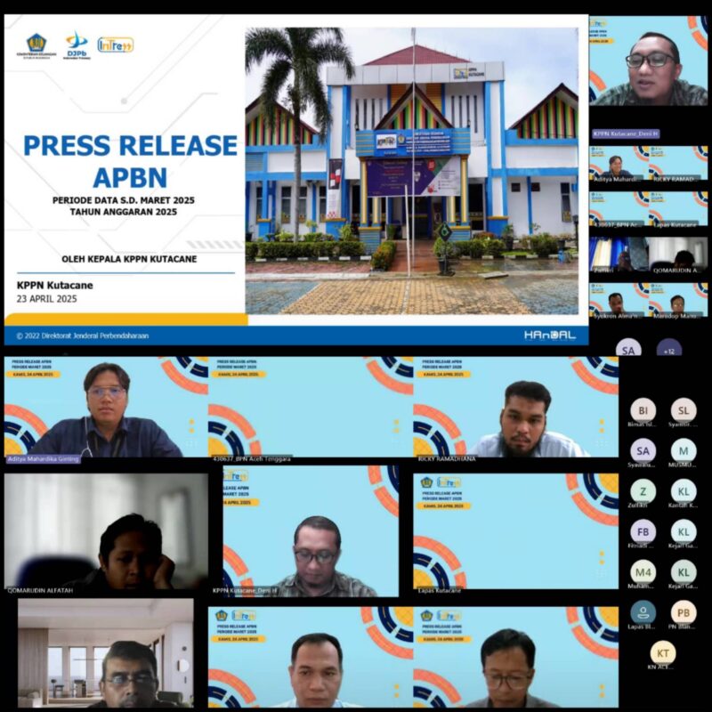 Kamis tanggal 25 April 2025 secara daring, Kepala KPPN Kutacane menyampaikan Press Release APBN di wilayah Kabupaten Aceh Tenggara dan Gayo Lues sampai dengan Maret 2025. Dalam press release, selain disampaikan kinerja APBN juga disampaikan kinerja APBD dan kondisi perekonomian yang terjadi di wilayah Provinsi Aceh dan Kabupaten Aceh Tenggara dan Gayo Lues.