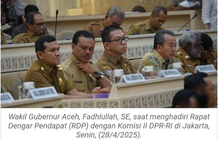Jakarta – Wakil Gubernur Aceh, Fadhlullah, menegaskan pentingnya keberlanjutan Dana Otonomi Khusus (Otsus) Aceh dalam Rapat Dengar Pendapat (RDP) bersama Komisi II DPR RI di Jakarta, Senin (28/4/2025). Selain membahas Dana Otsus, Fadhlullah juga menyoroti persoalan Badan Usaha Milik Daerah (BUMD), pengelolaan Badan Layanan Umum Daerah (BLUD), serta pengangkatan tenaga PPPK.