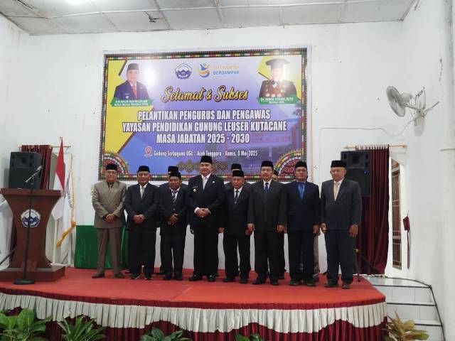 Aceh Tenggara, 8 Mei 2025 – Bupati Aceh Tenggara, H.M. Salim Fakhry, SE, MM, resmi melantik jajaran pengurus dan pengawas Yayasan Pendidikan Gunung Leuser (YPGL) Aceh periode 2025–2030 dalam sebuah upacara yang berlangsung di Gedung Serba Guna Universitas Gunung Leuser Aceh, Kamis (8/5).