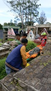 Dengan menggunakan tali dan kantong mayat, Jenazah langsung dievakuasi ke ruang mayat RSU (Rumah Sakit Umum) Kabanjahe.