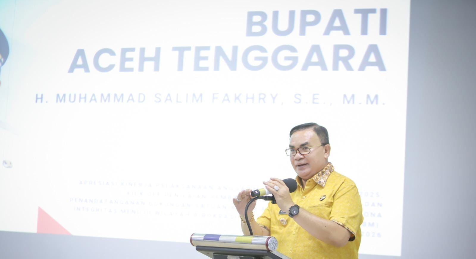 Kutacane — Bupati Aceh Tenggara H. M. Salim Fakhry menghadiri kegiatan Kick Off Penilaian Pembangunan Zona Integritas menuju Wilayah Birokrasi Bersih dan Melayani (ZI-WBBM) yang digelar Kantor Pelayanan Perbendaharaan Negara (KPPN) Kutacane, Kamis (5/3/2026).