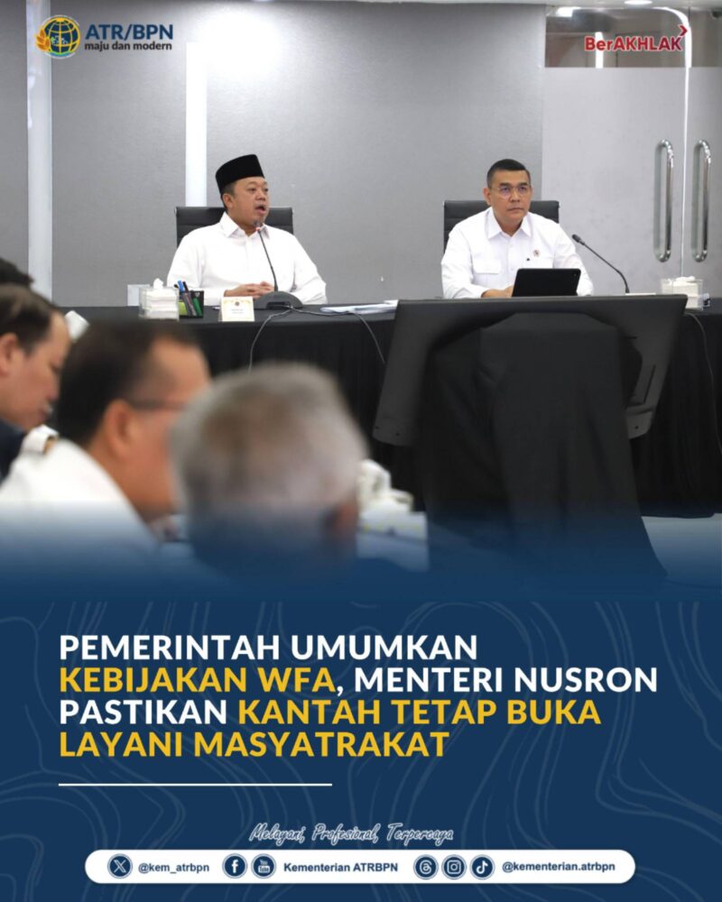 *Pemerintah Umumkan Kebijakan WFA, Menteri Nusron Pastikan Kantah Tetap Buka Layani Masyarakat*