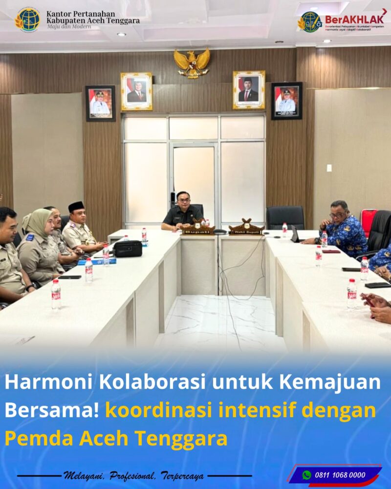 Hari ini Kamis 02 April 2026, Kantor Pertanahan Kabupaten Aceh Tenggara menggelar kegiatan koordinasi intensif dengan Pemda Aceh Tenggara. Dukungan penuh dari Bapak Bupati dan jajarannya memastikan kelancaran program pelayanan pertanahan. Puncaknya, pembagian Sertifikat Pemda secara seremonial—bukti komitmen nyata membangun Aceh Tenggara yang lebih maju dan sejahtera.