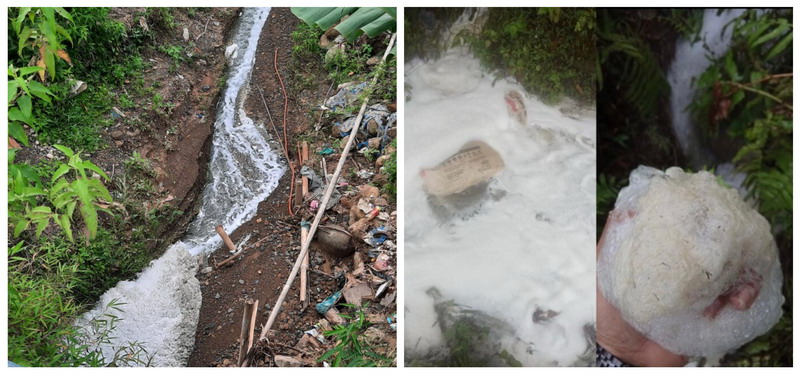 Di lapangan, persoalan itu tidak berhenti sebagai catatan tertulis. Rekaman video yang dihimpun memperlihatkan sebuah pipa besar mengalirkan cairan ke parit terbuka. Air yang keluar tampak putih keruh, berbusa, dan mengalir terus ke media terbuka, bukan ke sistem pengolahan tertutup. Tidak tampak instalasi pengolahan air limbah pada titik yang terpantau. Dalam praktik industri, kondisi semacam ini sulit dijelaskan sebagai air biasa. Cairan yang keruh dan berbusa justru kuat mengarah pada limbah proses, baik yang mengandung residu organik maupun unsur kimia dari produksi. Jika aliran itu benar masuk ke parit terbuka tanpa pengolahan memadai, maka dugaan pembuangan limbah sembarangan menjadi sangat kuat. Dalam hukum lingkungan, video seperti ini belum cukup untuk memutuskan perkara, tetapi cukup untuk menjadi petunjuk awal yang patut ditindaklanjuti dengan penyelidikan dan uji laboratorium.