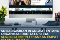 Siaran Pers 21/SP/III/BH/2026 Kamis, 12 Maret 2026 *Sosialisasi Regulasi tentang Organisasi dan Tata Kerja, Sekjen ATR/BPN Tekankan Empat Pesan Strategis* Jakarta – Sekretaris Jenderal…